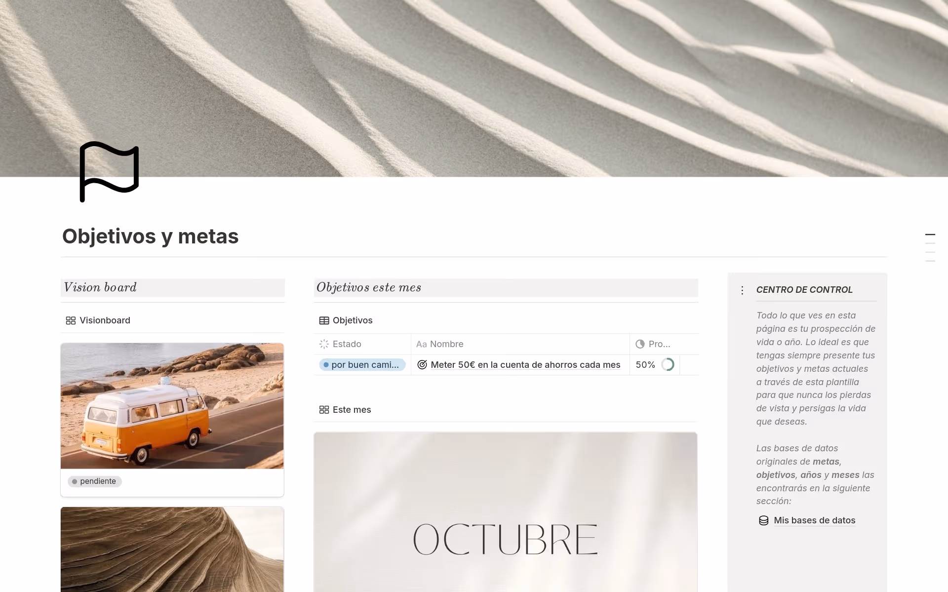 • Bases de datos: Cambia los nombres, tipos e iconos de las propiedades o añade/elimina propiedades según lo que necesites. También puedes agregar nuevas vistas de base de datos, como tableros, listas, calendarios, cronogramas o galerías.