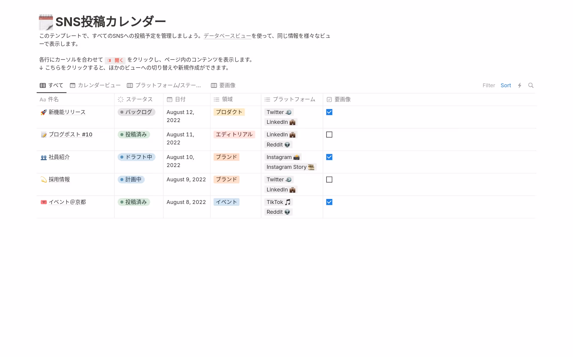 Great Social media Planner template